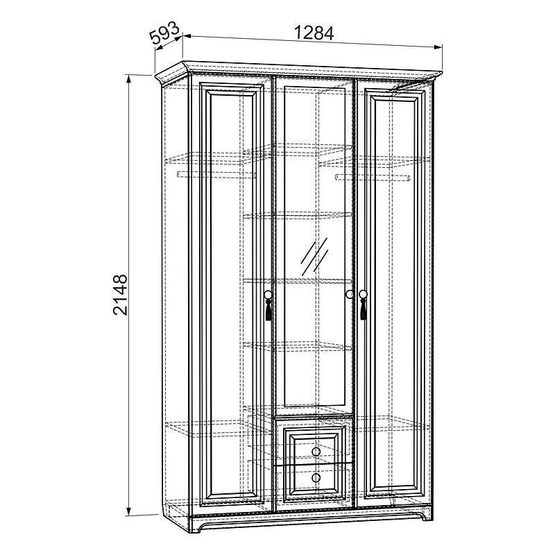 Ищете долговечную и красивую мебель для дома? Шкаф платяной Белла из серии «Белла» – то, что вам нужно. в следующей комплектации: 2 штанги для вешалок, 2 ящика, 3 дверцы, 8 полок. Зеркало, МДФ, из которого сделан фасад, имеет прочное верхнее покрытие (цвет «зеркальный, софт джелато»), оптимальное для использования в помещениях с повышенной проходимостью, а комфортные габариты изделия позволят сэкономить полезное пространство (шкаф шириной 1284 мм и глубиной 593 мм, при этом вы сможете разместить в нем все необходимое благодаря внушительной высоте, равной 2148 мм).