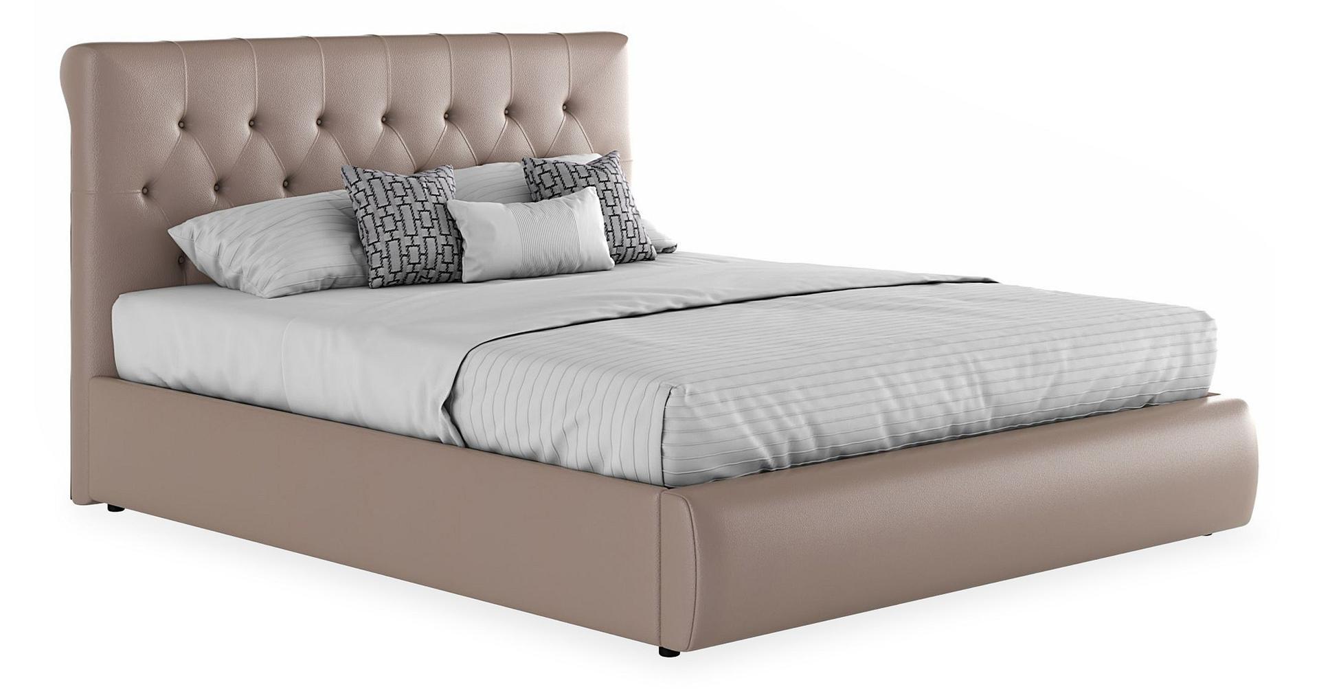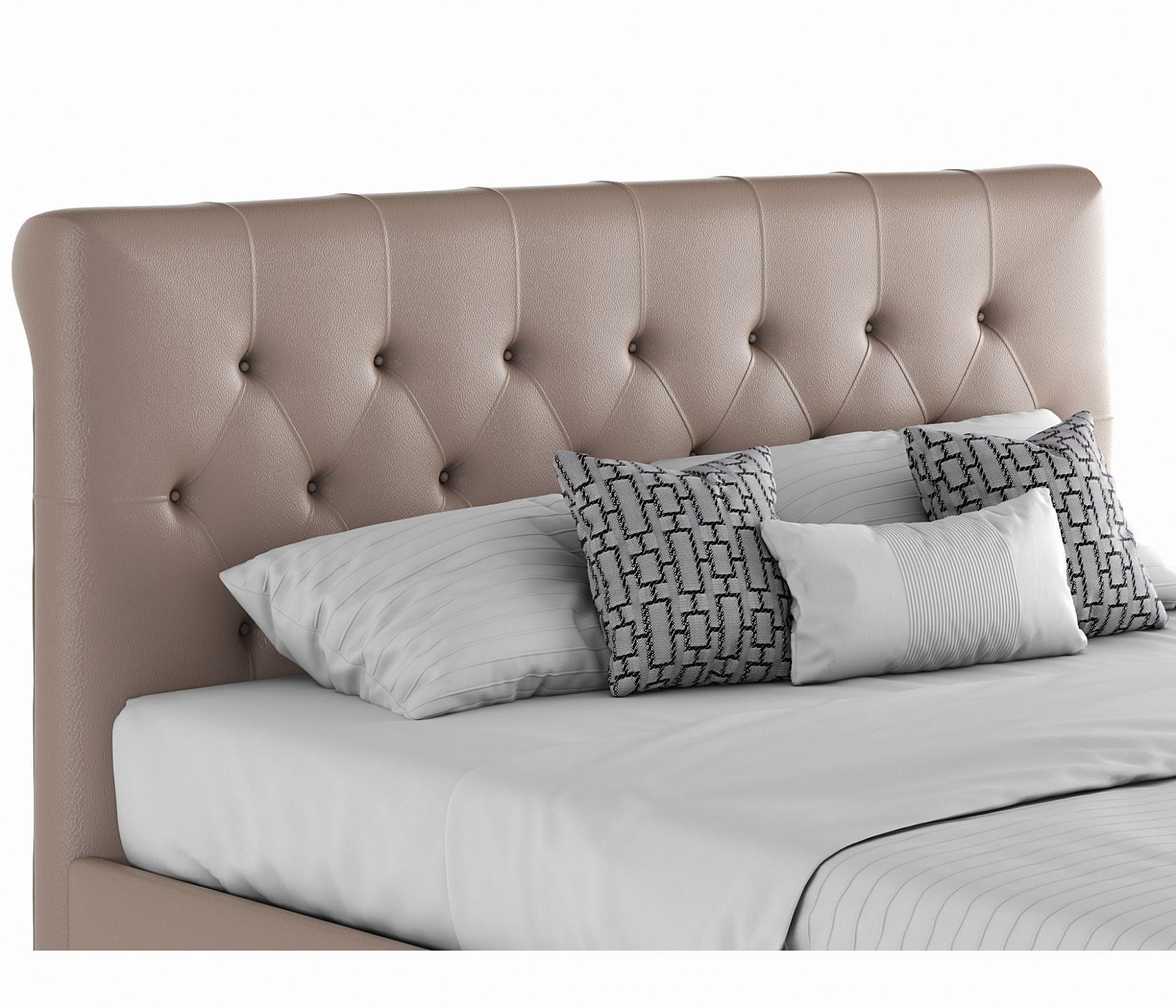 Кровать имеет рельефную мягкую спинку с неглубокими стяжками, которые придают особую изысканность изголовью. Обивка изголовья и весь периметр кровати выполнен из высокопрочного материала “Винилискожа”.
