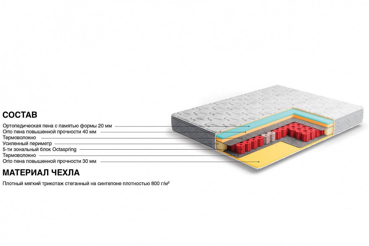 Пена с эффектом памяти приятно окутывает спящего и дарит мгновенное расслабление. Благодаря этому эффекту вы быстрее засыпаете и лучше спите. Повышенная воздухопроницаемость пружин Octaspring обеспечивает комфортную свежесть спального места на протяжении всей ночи.