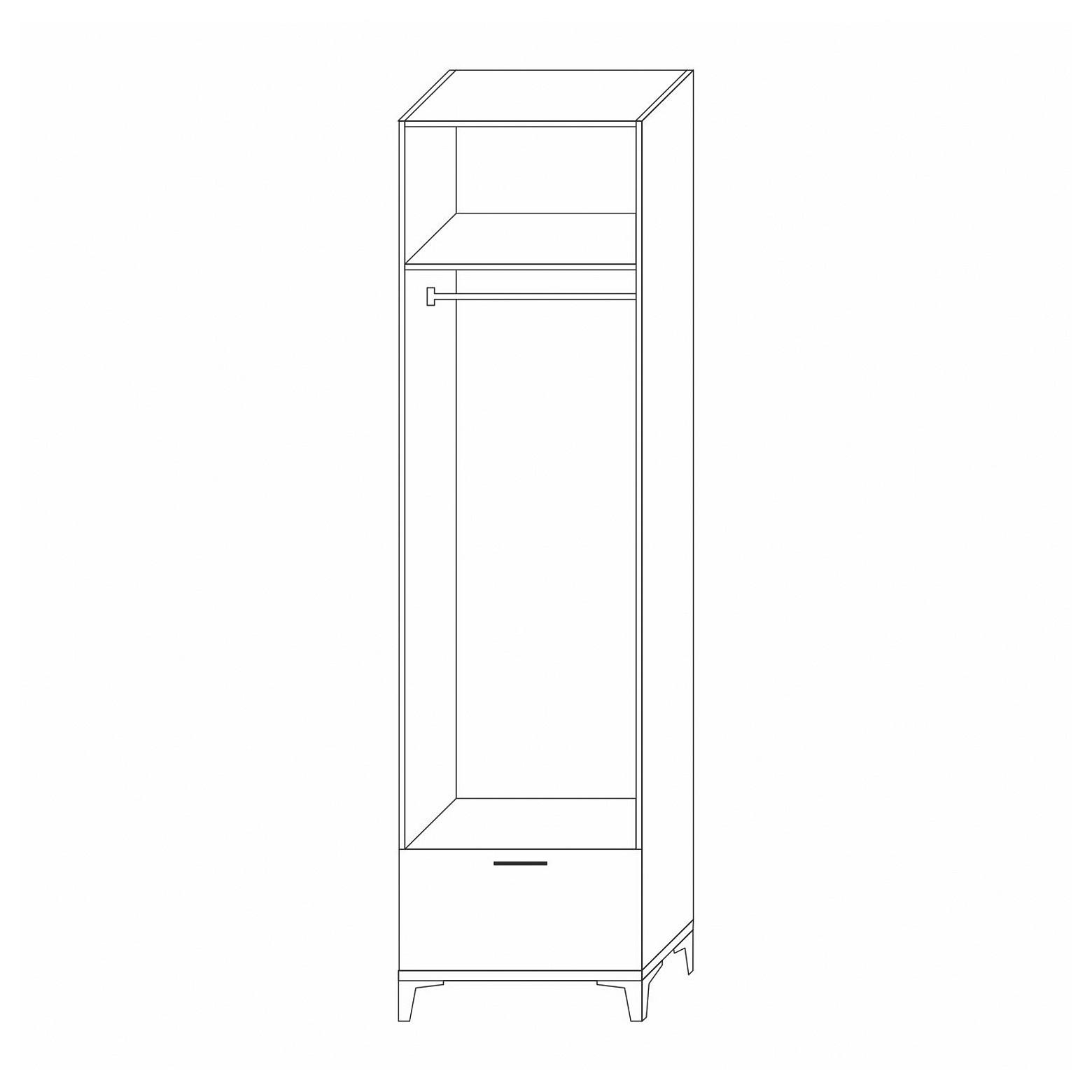 Шкаф платяной из коллекции Милан сочетает в себе строгую геометрию форм, высокие ножки и контрастные детали. Материал изготовления корпуса высококачественное ЛДСП дуб леонардо, дно толщиной 25 мм с кромкой черного цвета смотрится с ножками как единое основание. Металлическая ручка черного цвета украшает фасады изделия. Высококачественные материалы и фурнитура, применяемые в производстве обеспечивают безопасность и надёжность изделия. ЛДСП класса эмиссии Е1 гарантирует отсутствие вредных испарений. Петли фасада имеют доводчик. Ящик оснащен современными направляющими скрытого типа.