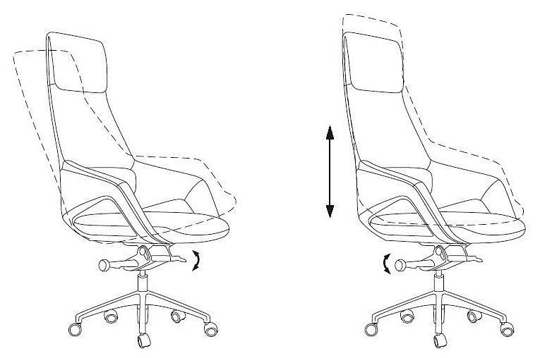 Механизм со смещенной осью качания с возможностью фиксации в нескольких положениях. Регулировка высоты (газлифт). Подлокотники монолитные кожаные с пластиковыми вставками под дерево. Крестовина алюминиевая. Колеса для паркета и ламината. Материал обивки: натуральная кожа (лицевые части).