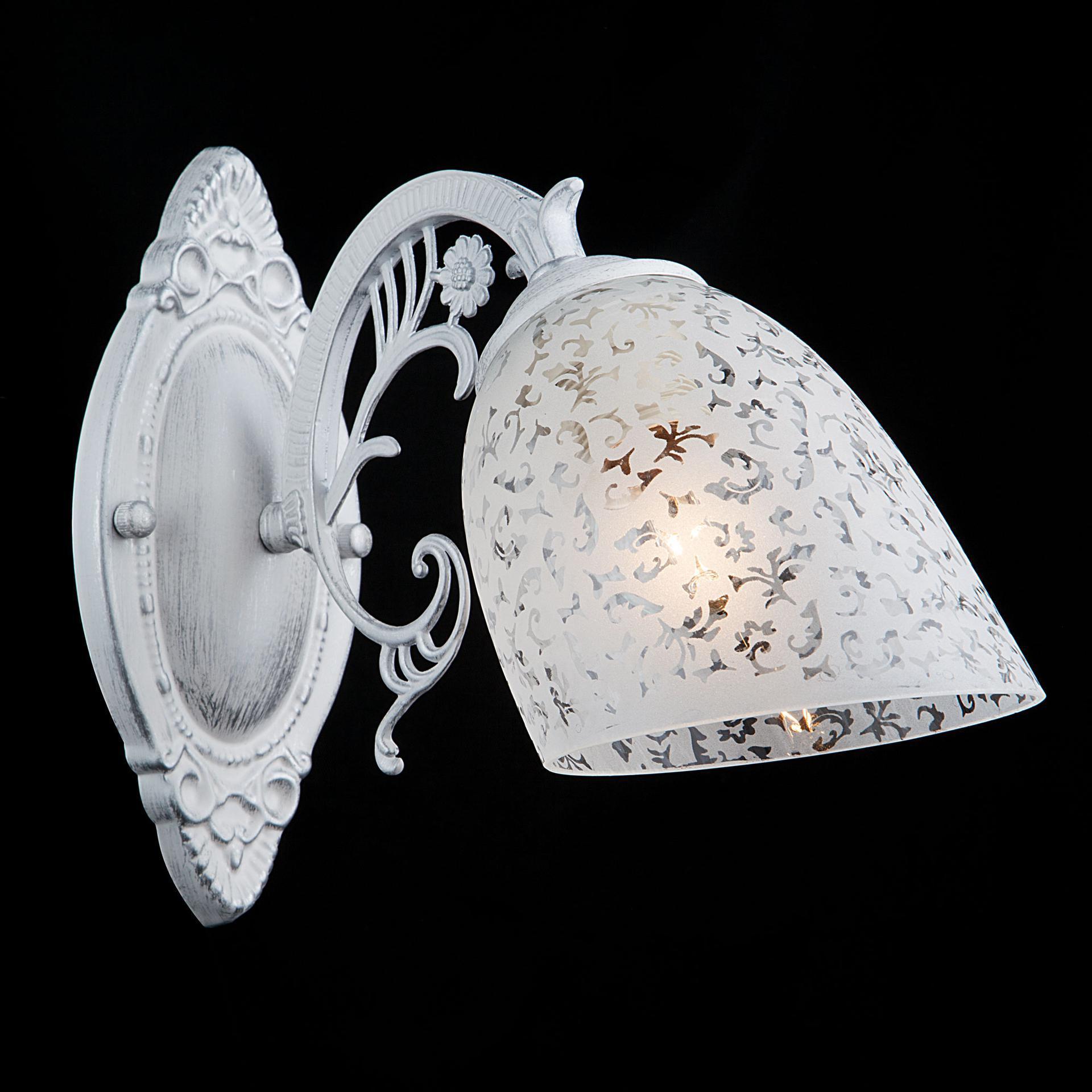 Бра в классическом стиле 70039/1 белый с серебром создаст качественное дополнительное освещение и станет эффектным дополнением к основному источнику света. Благодаря белому стеклянному плафону бра создает мягкое равномерное свечение, подходящее для комфортного чтения книг в вечернее время. В качестве источника света используются сменные лампы типа "Свеча" или "Шар" с цоколем E27. Патрон рассчитан на максимальную мощность ламп накаливания 60Вт. Корпус светильника выполнен из высококачественного и прочного металла с надежным покрытием. Бра легко устанавливается при помощи крепежной планки, которая обеспечивает надежную фиксацию светильника на стене. В интернет-магазине Минимир вы можете купить настенный светильник с доставкой по Москве, Санкт-Петербургу и России.