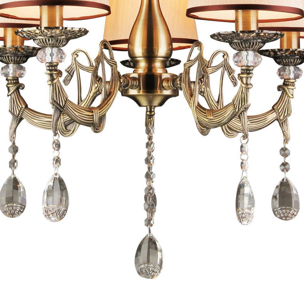 Семь Огней создает продукт от эскиза до готового шедевра. Над созданием светильников трудятся одни из лучших дизайнеров и конструкторов. Наша компания предъявляет высокие требования к производимой продукции, что подтверждено сертификатами качества.ПРЕИМУЩЕСТВАЭлегантный и стильный дизайнМягкий рассеивающий свет за счет тканевого абажураПРИМЕНЕНИЕПодвесная люстра предназначена для основного освещения помещенийЛюстра подойдет в гостиную, зал, спальню, столовую КОНСТРУКЦИЯ И МАТЕРИАЛЫЛюстра изготовлена из высококачественных материалов и является безопасной для человека, животных и окружающей средыКонструкция позволяет регулировать высоту люстры изменением количества звеньев цепиИспользуемые материалы: металл, ткань, хрустальИсточник света - лампы накаливания мощностью до 60 Вт, светодиодные лампы мощностью до 12 ВтКрепление - подвесным способом на крюкУдобный крепеж подойдет под все виды потолков: бетон, гипсокартон, натяжные и деревянные потолки.