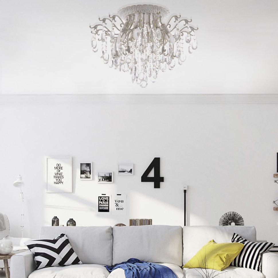 Семь Огней создает продукт от эскиза до готового шедевра. Над созданием светильников трудятся одни из лучших дизайнеров и конструкторов. Наша компания предъявляет высокие требования к производимой продукции, что подтверждено сертификатами качества.ПРЕИМУЩЕСТВАЭлегантный и стильный дизайнИспользование необычных линий и формЭффектный внешний видХорошие осветительные характеристики, благодаря многогранности хрусталяПРИМЕНЕНИЕПотолочная люстра предназначена для основного освещения помещенийЛюстра подойдет в гостиную, зал, спальню, столовую с невысокими потолкамиКОНСТРУКЦИЯ И МАТЕРИАЛЫЛюстра изготовлена из высококачественных материалов и является безопасной для человека, животных и окружающей средыИспользуемые материалы: металл, хрустальИсточник света - лампы накаливания мощностью до 60Вт, светодиодные лампы мощностью до12 ВтКрепление - накладным способом с помощью шуруповУдобный крепеж подойдет под все виды потолков: бетон, гипсокартон, натяжные и деревянные потолки.
