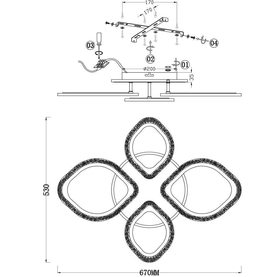 Семь Огней создает продукт от эскиза до готового шедевра. Над созданием светильников трудятся одни из лучших дизайнеров и конструкторов. Наша компания предъявляет высокие требования к производимой продукции, что подтверждено сертификатами качества.ПРЕИМУЩЕСТВАСовременный дизайнИзменение освещения: «теплый» свет (3000К), «дневной» свет (4500К), «холодный» свет (6000К)Управление функциями с помощью пульта ДУ или с помощью выключателяПоддержка технологии умного домаПульт ДУ с памятьюДлительный срок службы светильникаПРИМЕНЕНИЕПредназначен для основного освещения помещенийПодойдет в гостиную, зал, спальню, прихожуюКОНСТРУКЦИЯ И МАТЕРИАЛЫСветильник изготовлен из высококачественных материалов и является безопасным для человека, животных и окружающей средыИспользуемые материалы: металл, акрилИсточник света -светодиодыSMD матрица на основанииКрепление -накладным способом с помощью шуруповКрепеж подойдет под все виды потолков: бетон, гипсокартон, натяжные и деревянные потолки.