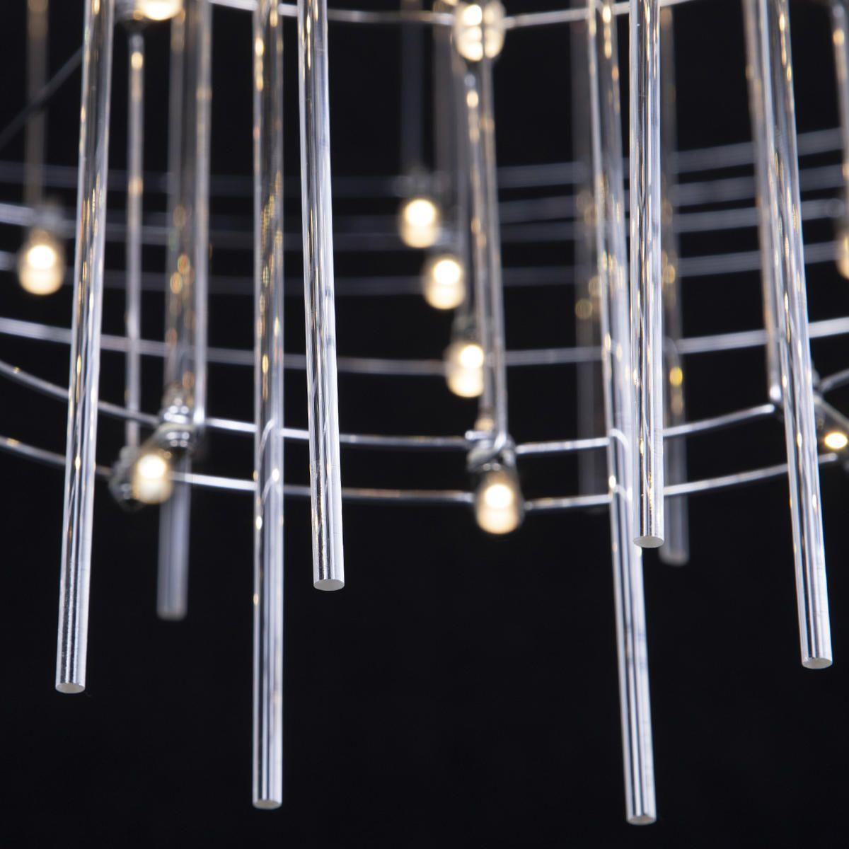 Восхитительная модель 10258/1000 от испанской компании Loft IT относится к коллекции Spy и отлично подойдет для установки на потолок спальни, оформленной в стиле хай-тек. Осветительный элемент встроен в конструкцию и не требует приобретения дополнительных лампочек. Прибор произведен с использованием материалов: металл и акрил и металл и может использоваться для натяжного потолка. Основным цветом товара является хромовый, серебристо-стальной и хромированный. Подвесной светодиодный светильник 10258/1000 продается по цене 89360 руб. Торопитесь сделать заказ в интернет-магазине SvetONe.