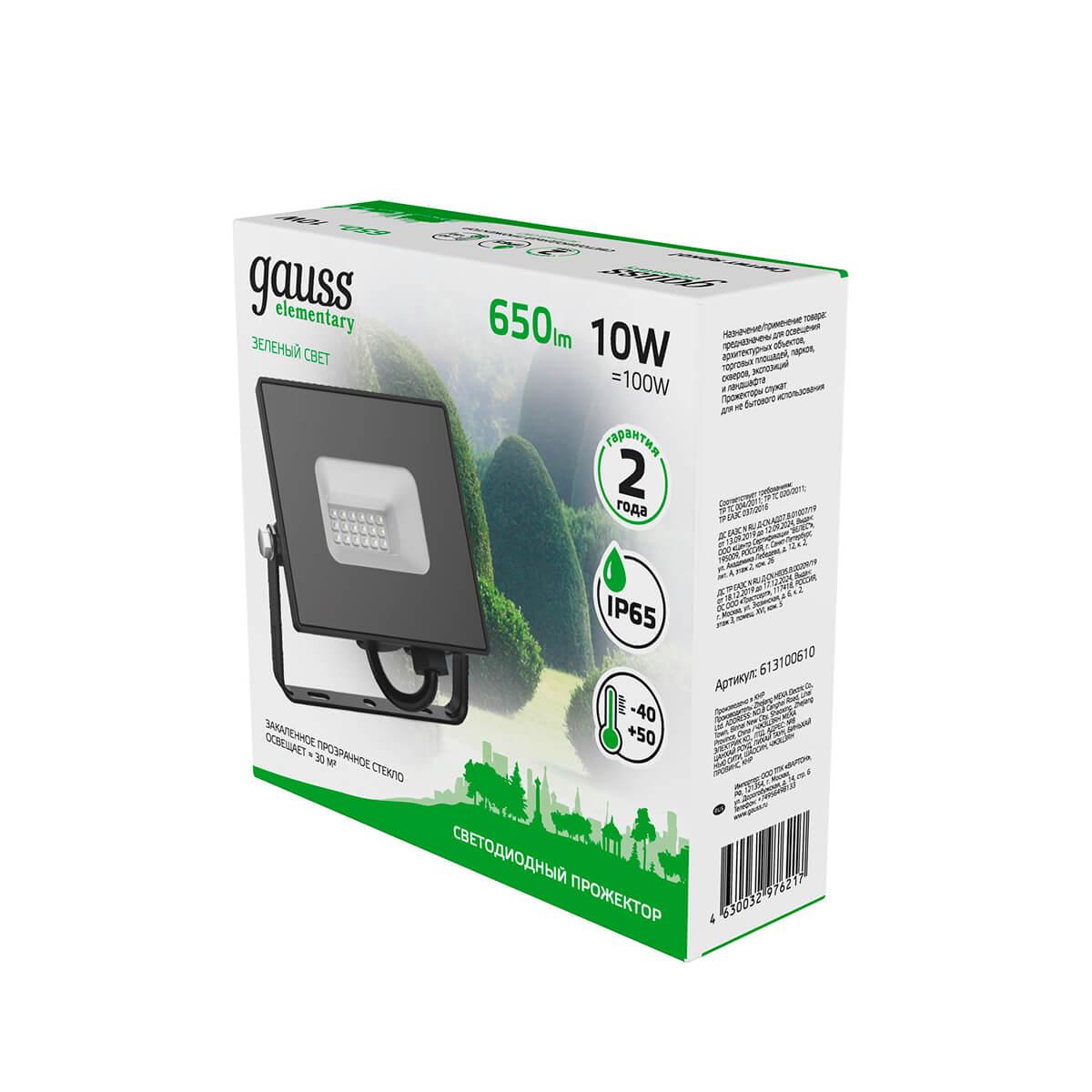 Прожектор светодиодный Gauss Elementary 10W 613100610