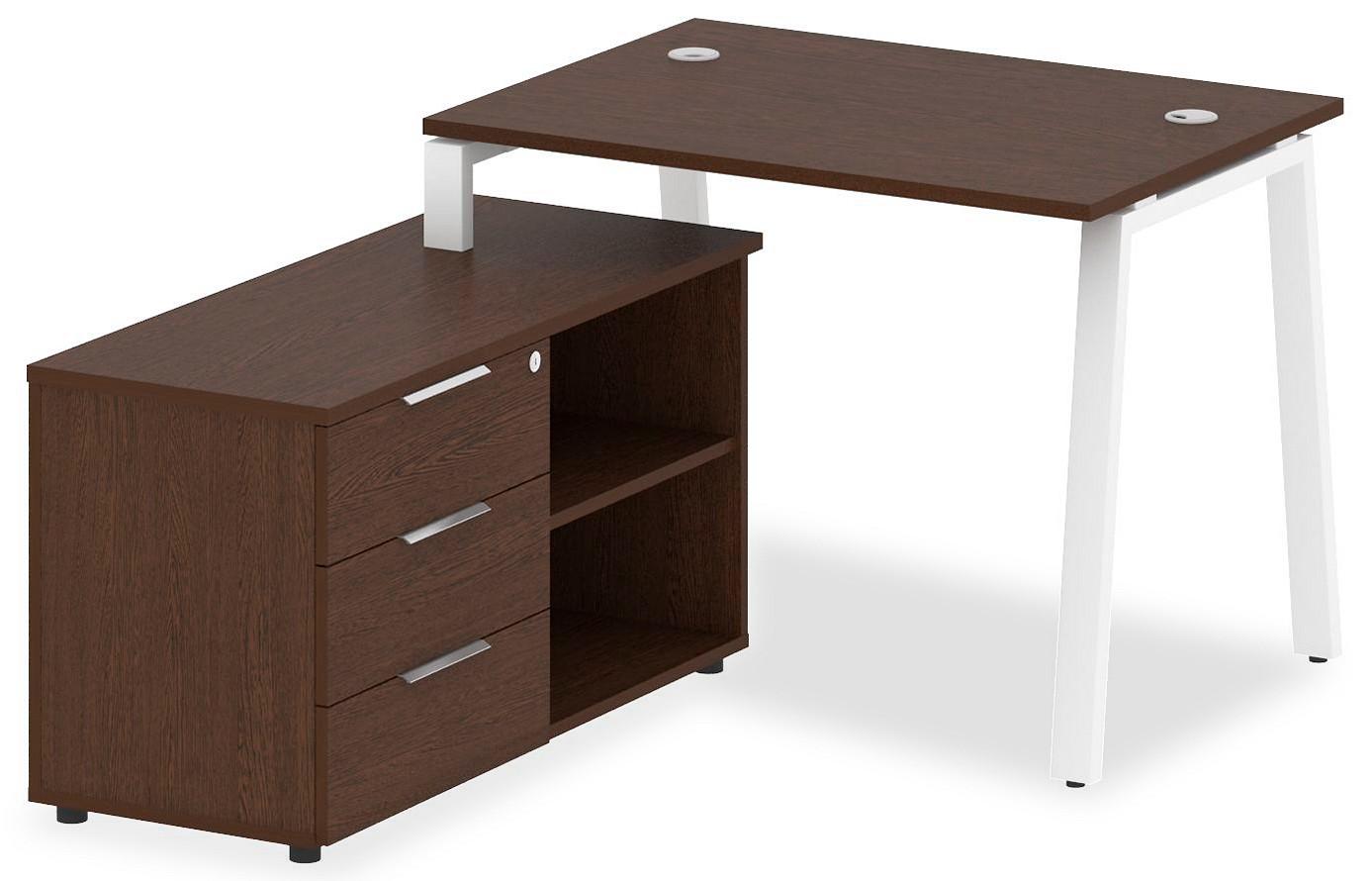 • 3 ящика. Для изготовления корпуса был выбран ЛДСП Е1, металл в оттенке белый, венге, завершает дизайн матовый верхний слой, гармонично сочетающийся со столешницей. Купить данную модель вы можете по привлекательной цене, равной 30987 руб.