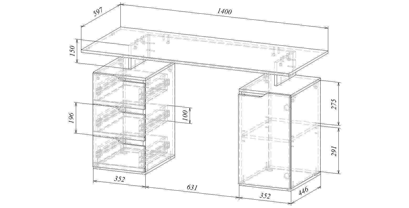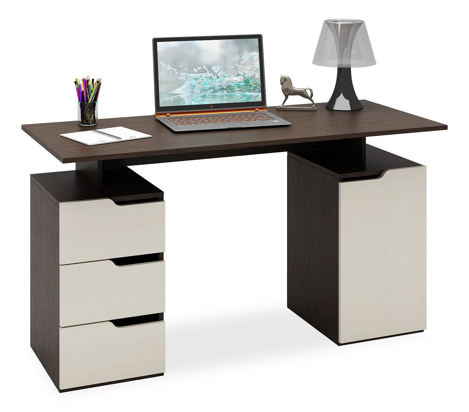 Работа или развлечения – Стол письменный Нейт-3 , созданный брендом 2735035, отлично подойдет для выполнения любых задач. Эта модель входит в серию «Нейт-3» и способен подстроиться под нужды каждого члена семьи. Благодаря оптимальным размерам изделия (1400Х600Х780 мм) вы сможете с комфортом заниматься любимыми и важными делами. Базовая комплектация включает в себя непосредственно письменный стол, тумбочка: 3 ящика;, тумбочка: 1 дверца, 1 полка. Для изготовления корпуса был выбран ЛДСП Е1 в оттенке венге, завершает дизайн матовый верхний слой, гармонично сочетающийся со столешницей.