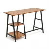 Работа, учеба или чтение – Стол письменный WD-02 TET_14245, созданный брендом 1407241, прекрасно подойдет для выполнения любых задач. Эта модель входит в коллекцию «WD-02» и способен подстроиться под потребности каждого члена семьи. Благодаря оптимальным размерам изделия (Х1200Х750 мм) вы сможете с комфортом заниматься любимыми и важными делами. Базовая комплектация включает в себя непосредственно письменный стол, 2 полки. Для изготовления корпуса был выбран металл в оттенке черный, завершает дизайн матовый верхний слой, гармонично сочетающийся со столешницей. Приобрести данную модель вы можете по привлекательной цене, равной 6790 руб.