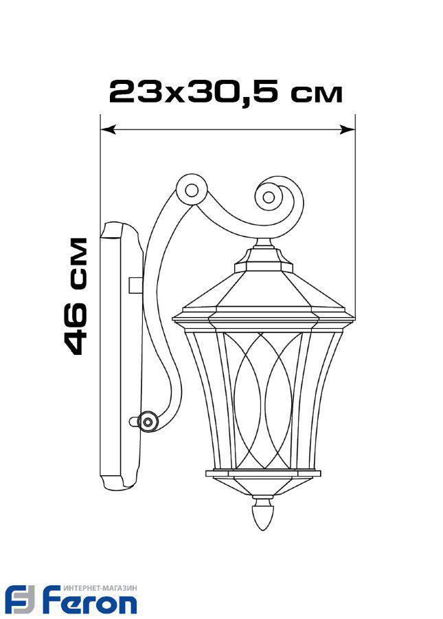 Номенклатура | PL4032 60W 230V E27 23*30,5*54,5CM черный (на стену вниз) |
