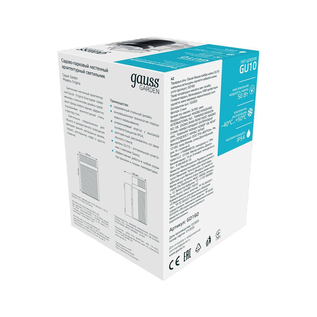 Уличный настенный светильник Gauss Electra GD160