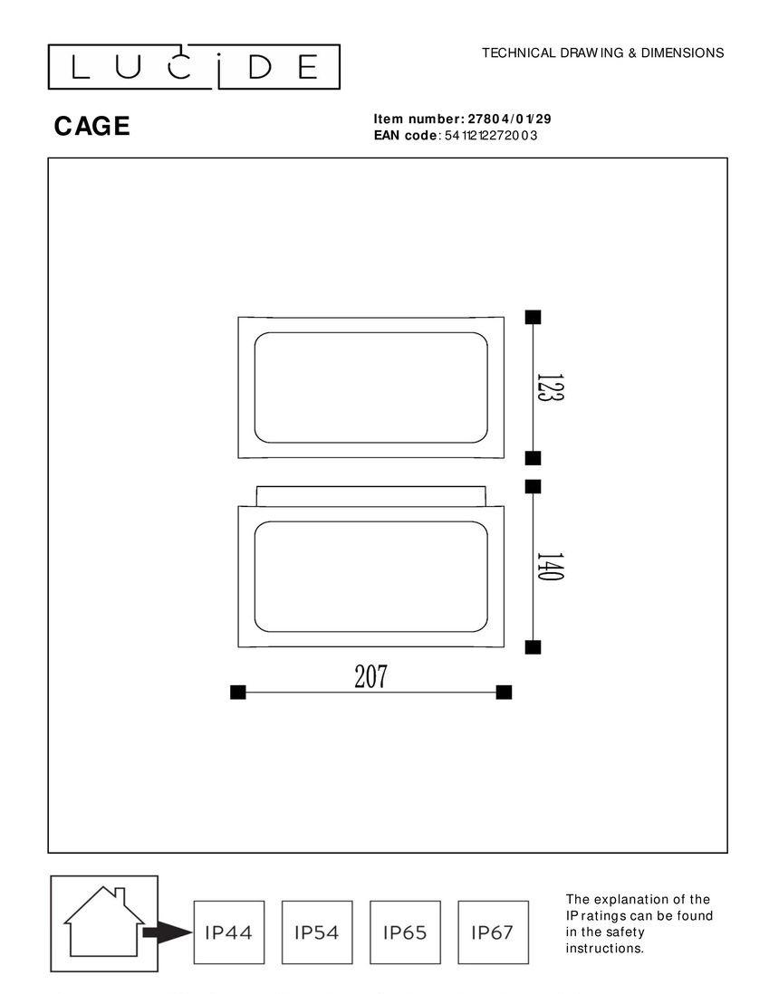 Уличный настенный светильник Lucide Cage 27804/01/29