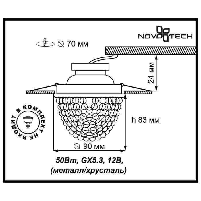 Утонченная модель 369778 от венгерской компании Novotech относится к коллекции Spot и отлично подойдет для установки на потолок спальни, оформленной в стиле арт-деко. Встраиваемый светильник Novotech Jinni 369778 с круглыми плафонами осветит помещение площадью 2.8 кв. м. Производитель Novotech рекомендует использовать для устройства галогеновые лампы с цоколем GX5.3 и мощностью 50 W. Прибор произведен с использованием материалов: хрусталь и металл и может использоваться для натяжного потолка. Основным цветом товара является хромовый. Торопитесь сделать заказ в интернет-магазине SvetONe.