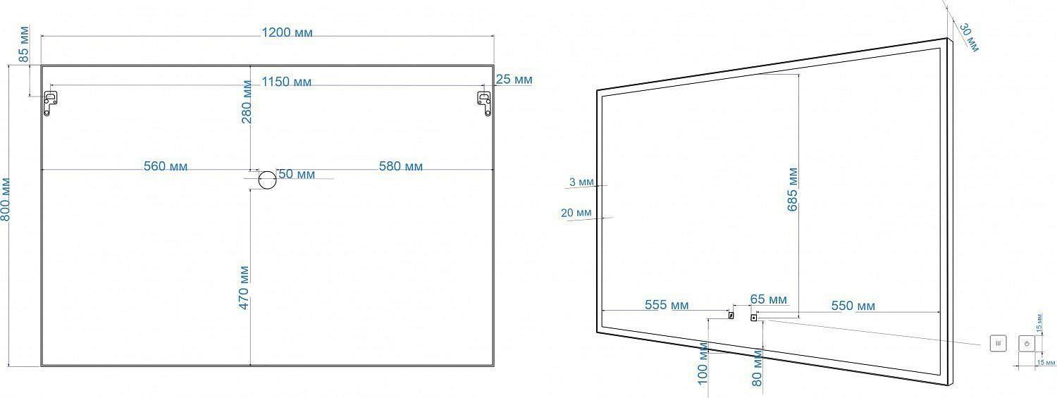 Зеркало настенное с подсветкой (120x80 см) Arezzo AM-Are-1200-800-DS-FC-H-Nero